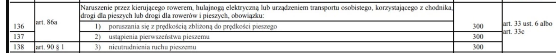 PoRD Art. 33c. Kierujący hulajnogą elektryczną lub urządzeniem transportu osobistego, korzystając z chodnika albo drogi dla pieszych, jest obowiązany jechać z prędkością zbliżoną do prędkości pieszego, zachować szczególną ostrożność, ustępować pierwszeństwa pieszemu oraz nie utrudniać jego ruchu.