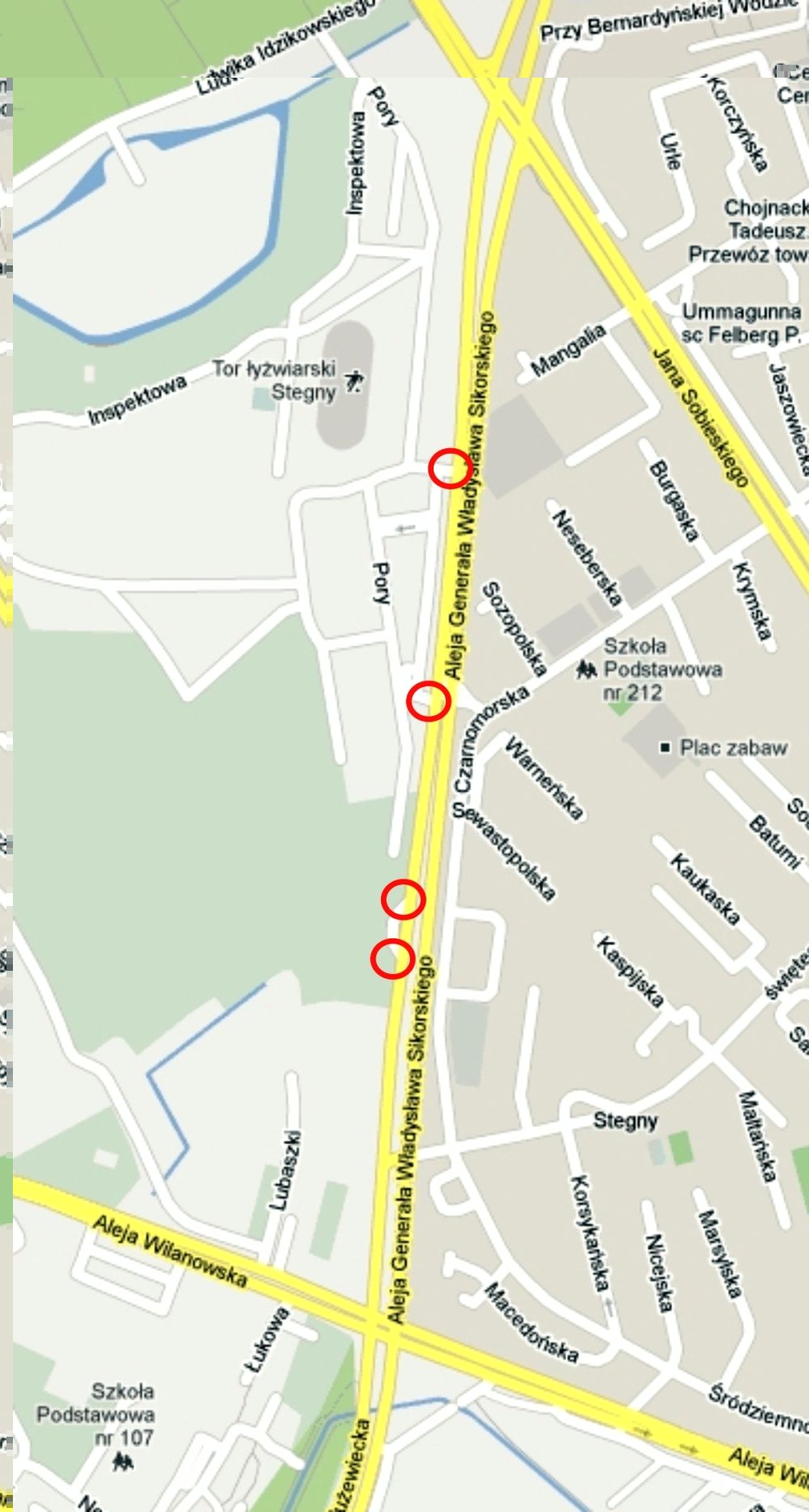 Chodzi o miejsca, które na mapce zaznaczyłem czerwonymi kółkami